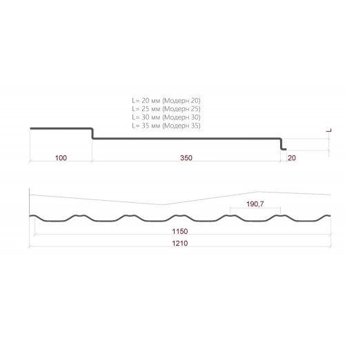 Особливістю даного виду продукту є те, що в залежності від кута нахилу, ширини, висоти та скатності даху можна змінювати глибину перештамповки від 20 до 35 мм.